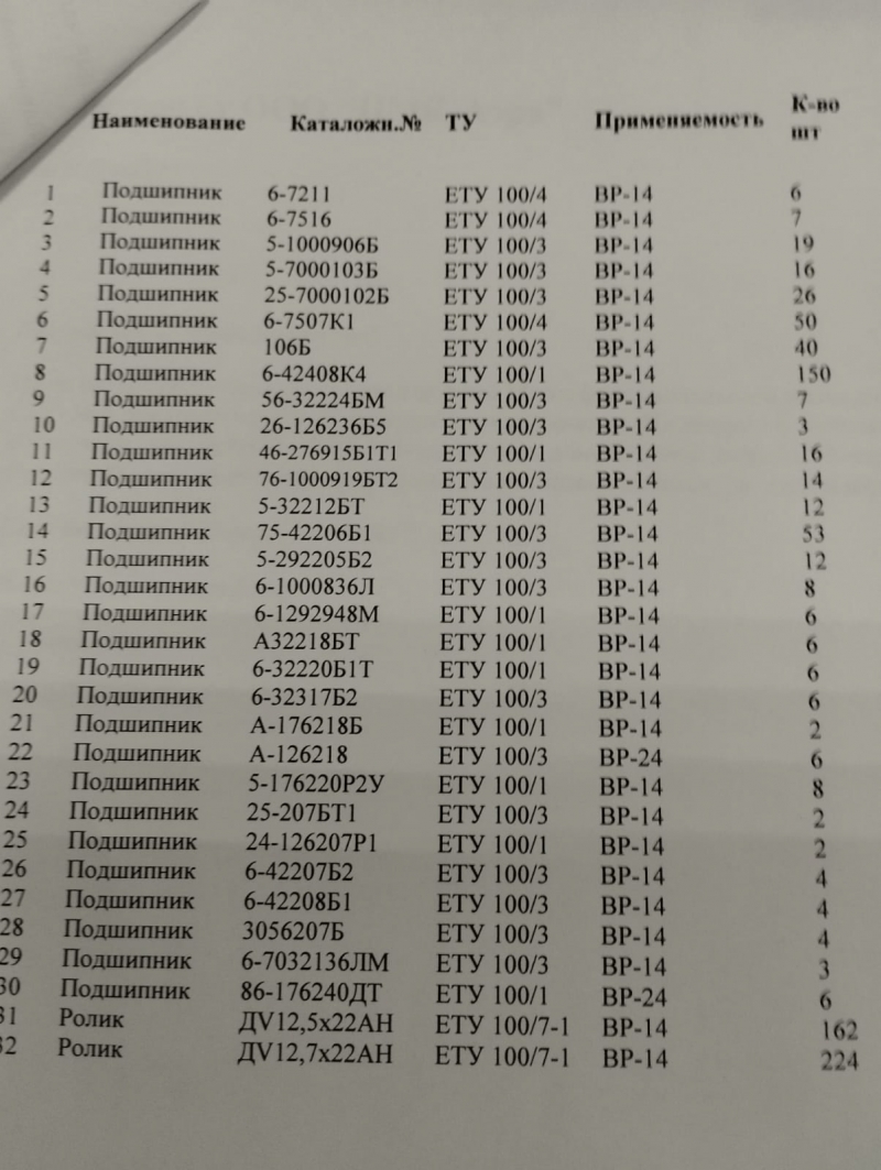 Подшипник 5-7000103Б ЕТУ 100/3.Подшипник 25-70001026 ЕТУ 100/3.Подшипник 6-7507K1 ЕТУ 100/4.Подшипник 106Б ETY 100/3.Подшипник 6-42408K4 ЕТУ 100/1.Подшипник 56-32224БМ ЕТУ 100/3.Подшипник 26-12623655 ETY 100/3.Подшипник 46-276915БІТІ ЕТУ 100/1.Подшипник 76-10009195т2 ЕТУ 100/3.Подшипник 5-32212БТ ЕТУ 100/1.Подшипник 75-4220651 ЕТУ 100/3.Подшипник 5-29220552 ЕТУ 100/3.Подшипник 6-1000836J ЕТУ 100/3.Подшипник 6-1292948М ETY 100/1.Подшипник А32218БТ ЕТУ 100/1.смотрите фото |